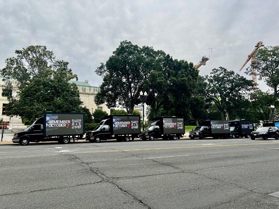 Following the Prime Minister's Office's extensive public relations work in the US in preparation for Prime Minister Netanyahu's meeting with President Trump, the "Remember October 7" campaign was expanded to Washington.As part of the campaign, large-scale signs and media vans were set up around the White House bearing the barcode the Prime Minister wore during his speech at the United Nations.- Photo: Prime Minister's Office Team.